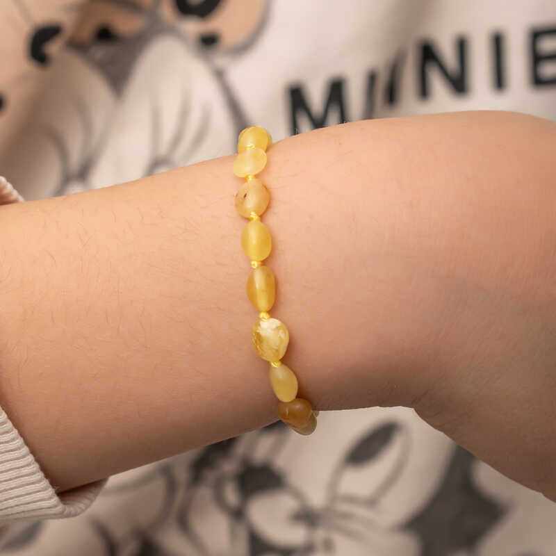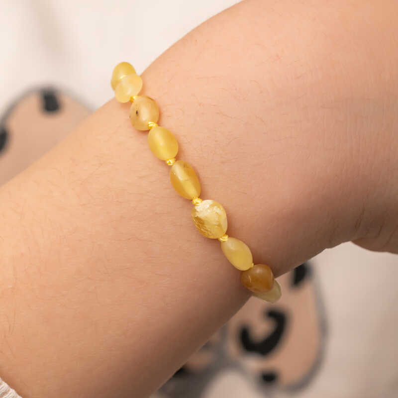 Kehribarın hem fiziksel hem metafiziksel etkisi vardır. Özellikle bebeklerin sağlığına önemli katkılar sağlayan kehribar taşı, bebeklerde sıklıkla görülen boğaz ve kulak ağrılarını dindirir. Bebeklerin en önemli sorunlarından biri olan diş çıkarma dönemindeki ağrı ve huysuzluk belirtileri de kehribar sayesinde oldukça hafiflemektedir. Aynı zamanda kehribar para taşı olarak bilinir. Bereketi arttırdığına inanılır. Kehribar bileklik olarak kullanıldığında astım, alerji, guatr, tiroid gibi şikayetlerde gerileme sağlar. Aynı zamanda kehribarın ağrı kesici etkisi bel ağrısı, baş ağrısı migren gibi şikayetlere iyi gelir. Kehribar bileklik eklem ve romatizmal ağrılarda etkilidir. Aynı zamanda negatif enerjilere karşı koruyucu etki eder. Kehribar aynı nazar boncuğu gibi etki sağlar. Ten teması ve ten ısısı ile etki eder. Kehribar bileklik bölgesel etki eder. İpek iplikten yapılmıştır, her boncuğun arası ayrı ayrı düğümlüdür. Kehribar bilekliklerin arkasında gizli plastik vidalı klips vardır. Kehribarın etkisini göstermesi kişinin bünyesine ve büyüme atağına bağlı olarak 24 ila 72 saat arasında zaman almaktadır. Bebekler için 0-5 yaş için kullanımı uygundur. Kehribar kullanıldıkça ve tena temas ettikçe etkisini gösterir. Bileklikler herkes için en gözde süsler arasındadır. Kehribar şıklığından ödün vermeyen bebeklerin severek kullanacakları bir aksesuar olacaktır. Ürünlerimizin tamamı el emeği ile üretilmiştir ve değerli taşlar nedeniyle ürün ağırlığında ± %10 sapma olabilmektedir.