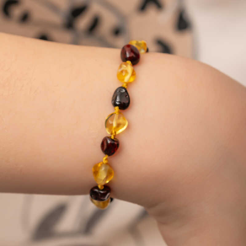 Kehribarın hem fiziksel hem metafiziksel etkisi vardır. Özellikle bebeklerin sağlığına önemli katkılar sağlayan kehribar taşı, bebeklerde sıklıkla görülen boğaz ve kulak ağrılarını dindirir. Bebeklerin en önemli sorunlarından biri olan diş çıkarma dönemindeki ağrı ve huysuzluk belirtileri de kehribar sayesinde oldukça hafiflemektedir. Aynı zamanda kehribar para taşı olarak bilinir. Bereketi arttırdığına inanılır. Kehribar bileklik olarak kullanıldığında astım, alerji, guatr, tiroid gibi şikayetlerde gerileme sağlar. Aynı zamanda kehribarın ağrı kesici etkisi bel ağrısı, baş ağrısı migren gibi şikayetlere iyi gelir. Kehribar bileklik eklem ve romatizmal ağrılarda etkilidir. Aynı zamanda negatif enerjilere karşı koruyucu etki eder. Kehribar aynı nazar boncuğu gibi etki sağlar. Ten teması ve ten ısısı ile etki eder. Kehribar bileklik bölgesel etki eder. İpek iplikten yapılmıştır, her boncuğun arası ayrı ayrı düğümlüdür. Kehribar bilekliklerin arkasında gizli plastik vidalı klips vardır. Kehribarın etkisini göstermesi kişinin bünyesine ve büyüme atağına bağlı olarak 24 ila 72 saat arasında zaman almaktadır. Bebekler için 0-5 yaş için kullanımı uygundur. Kehribar kullanıldıkça ve tena temas ettikçe etkisini gösterir. Bileklikler herkes için en gözde süsler arasındadır. Kehribar şıklığından ödün vermeyen bebeklerin severek kullanacakları bir aksesuar olacaktır. Ürünlerimizin tamamı el emeği ile üretilmiştir ve değerli taşlar nedeniyle ürün ağırlığında ± %10 sapma olabilmektedir.