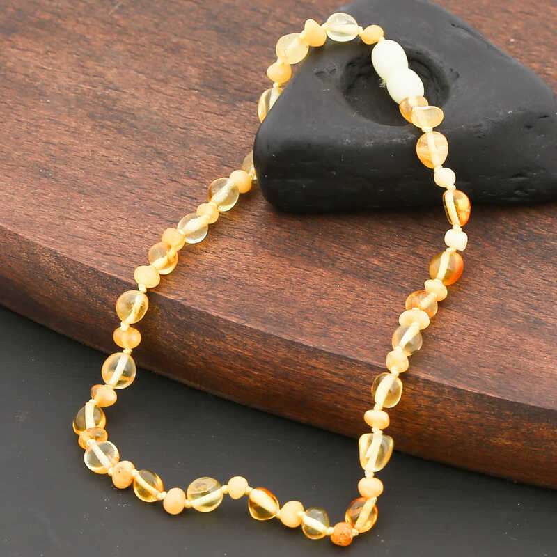 Kehribar diş kolyesi bebeklerde ortalama 4.aydan itibaren kullanılmaya başlar. Ağız suyu akıntısı, ağrı,iştahsızlık, ve uykusuzluk gibi diş çıkarma dönemine bağlı oluşan şikayetlerde çocukların diş dönemini daha rahat geçirmesini sağlar.Ten teması ve ten ısısı ile etki eder. Kehribar kolye bölgesel etki eder. İpek iplikten yapılmıştır, her boncuğun arası ayrı ayrı düğümlüdür. Kehribar kolyelerin arkasında gizli plastik vidalı klips vardır. Kehribarın etkisini göstermesi kişinin bünyesine ve büyüme atağına bağlı olarak 24 ila 72 saat arasında zaman almaktadır. Kehribar kullanıldıkça ve tena temas ettikçe etkisini gösterir. Bebeklerde 0-3 yaş arası ortalama uygun standart ebat 32cm-34cmdir. Kolyeler herkes için en gözde süsler arasındadır, sanıyoruz bu süs merakı küçük yaşta başlıyor. Küçük yaşlarda süse merak salan birbirinden süslü ve şık takı modellerini sunuyoruz. Kehribar şıklığından ödün vermeyen küçüklerin severek kullanacakları bir aksesuar olacaktır. Ürünlerimizin tamamı el emeği ile üretilmiştir ve değerli taşlar nedeniyle ürün ağırlığında ± %10 sapma olabilmektedir.