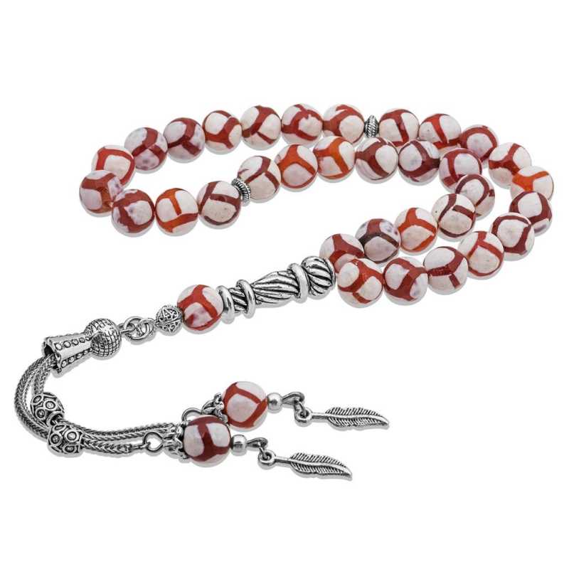 Doğaltaş Metal Püsküllü Çizgili Akik Taşı Tesbih