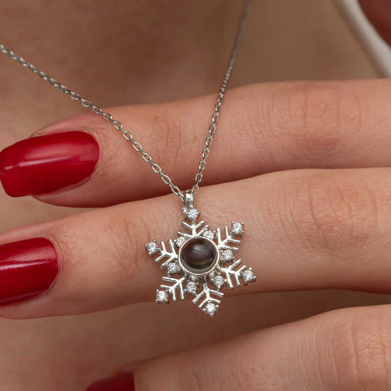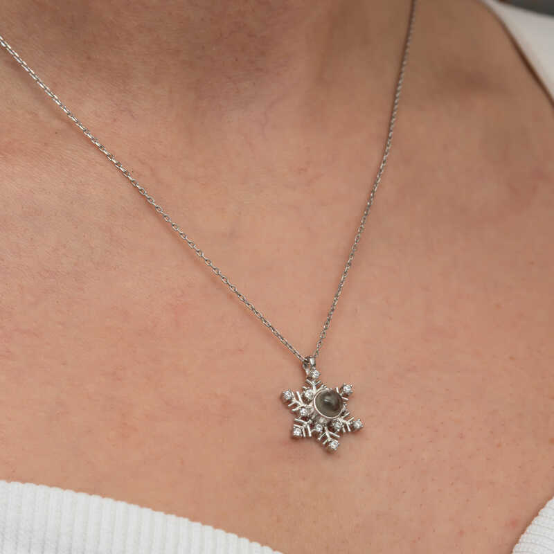 Gümüş 100 Dilde Seni Seviyorum Kar Tanesi Kadın Kolye