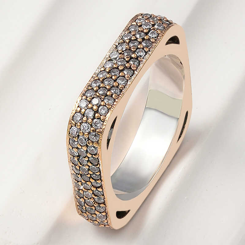 Gümüş 3 Sıra Kare Tamtur Kadın Yüzük