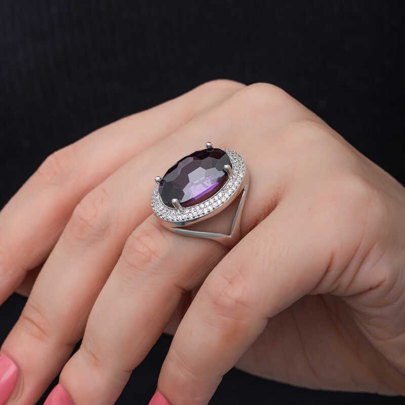 Gümüş Ametist Taşlı Kadın Yüzük