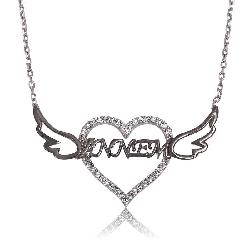 Gümüş Annem Yazılı Kalp Bayan Kolye