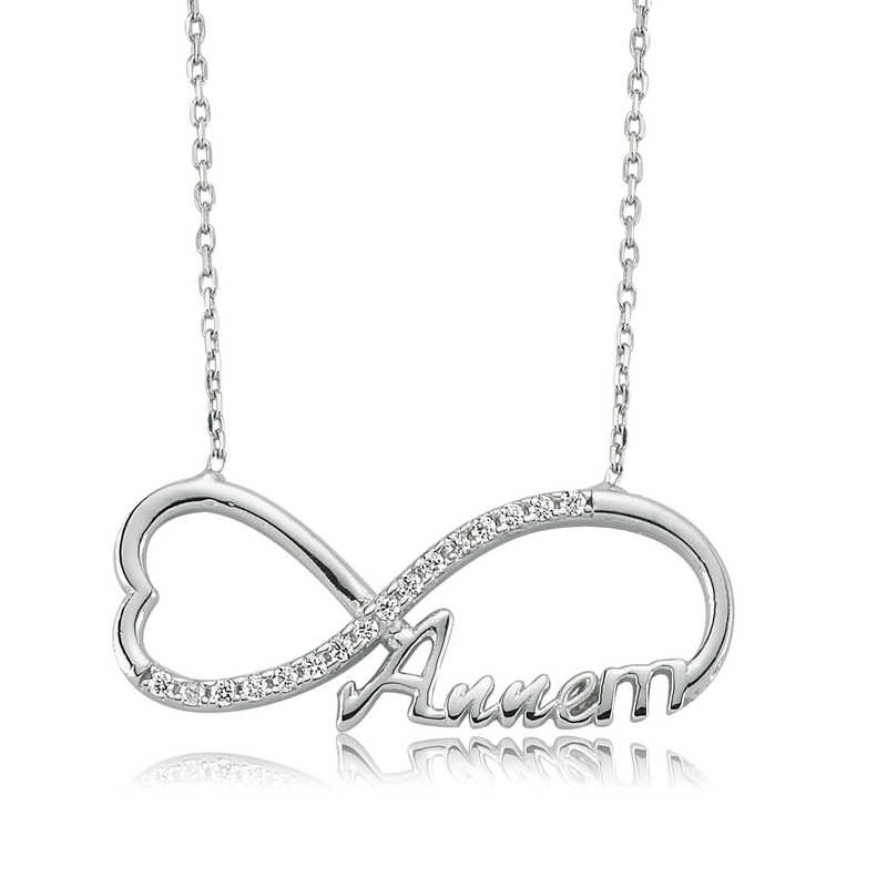 Hayatta en değerli varlığımız annemiz için en güzel hediyeyi vermek istemeniz çok doğaldır. Çünkü annemiz bizim için hayattaki en önemli varlıktır. Annenize duyduğunuz sonsuz sevginizi hissettirebileceğiniz bu özel tasarım gümüş annem yazılı sonsuzluk kolye ile hem çok mutlu edeceksiniz, hem de onu güzel bir hediyeyle taçlandırmış olacaksınız. Gümüş kolye üzerine rodyum kaplama yapılmıştır. Rodyum kaplama yapılan kolyeler parlaklığını uzun süre muhafaza eder, oksitlenmesi gecikir. Kolye üzerinde bulunan taşlar zirkondur. Gümüş kolyelerimizin tamamı el emeği ile üretilmiştir. Gümüş ve değerli taşlar nedeniyle belirtilen ortalama ürün ağırlığında ± %10 sapma olabilmektedir.