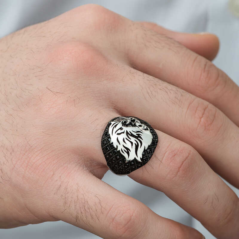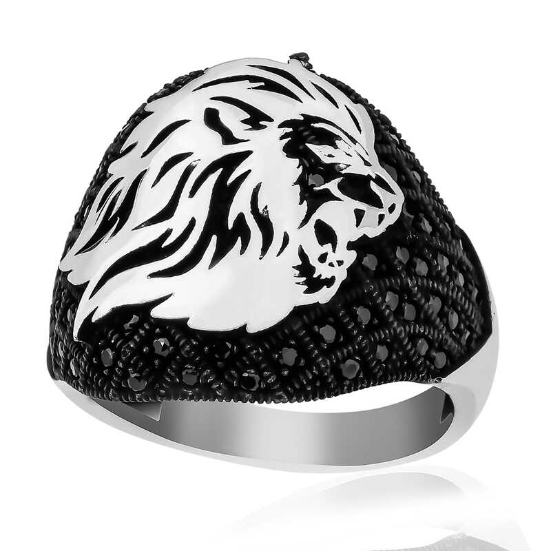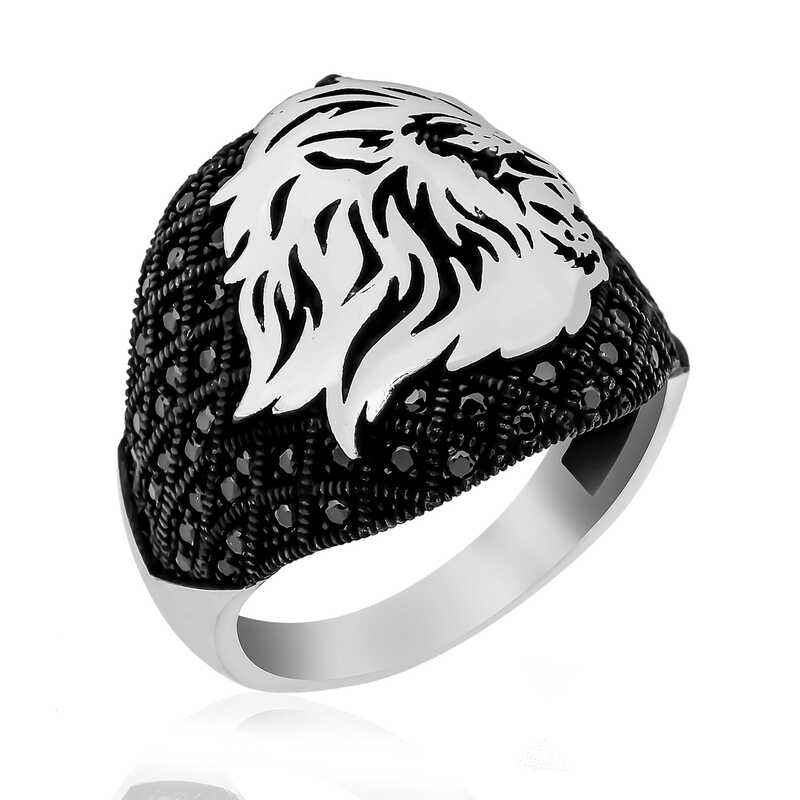 Aslan, hayvanlar aleminde ormanların kralı olarak bilinir. Aslan demek lider demektir. Erkek aslanın başının etrafı uzun ve güzel bir yele ile süslüdür. Omuzlarının üzerine kadar dağılan bu perçem, kızdığı zaman kabarır. Pençelerinin büyük olması, yere sağlam basmasını sağlar. Aslanlar dünya üzerinde yaşayan kedi türleri içinde en sosyal cinstir. Aslan figürlü gümüş yüzüğü ülkemizde iki farklı nedenden dolayı tercih edebilirsiniz. Biri burcu aslan olan kişiler için bir diğeri de takım sembolü olarak galatasaray taraftarları tercih edebilir. Sizde sevdiklerinize gümüş aslan kafası yüzüğü hediye edebilir onları sevindirebilirsiniz. Yüzük 925 ayar gümüşten imal edilmiştir. Gümüş üzerine oksit kaplama yapılmıştır. Yüzüğün üzerinde siyah zirkon taşlar yer almaktadır. Ürünlerimizin tamamı el emeği ile üretilmiştir. Gümüş ve değerli taşlar nedeniyle ürün ağırlığında ± %10 sapma olabilmektedir.