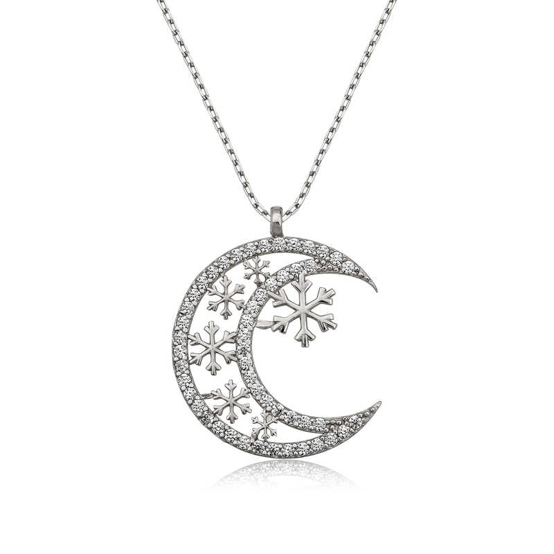 Gümüş Ay Kar Tanesi Bayan Kolye