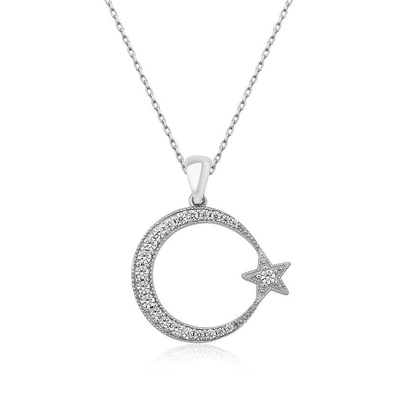 Gümüş Ay Yıldız Bayan Kolye