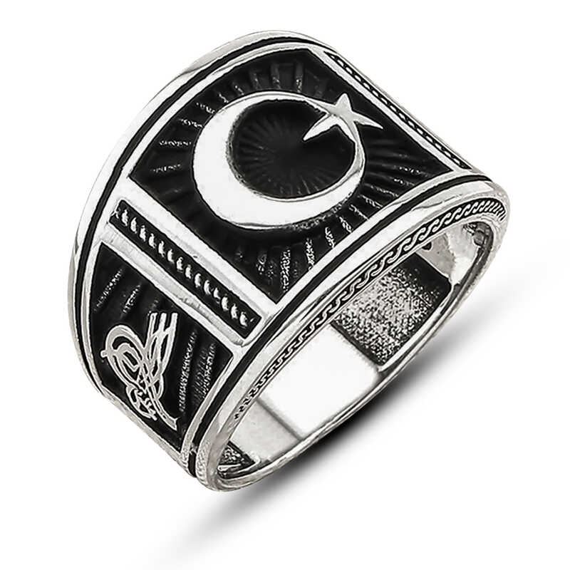 Gümüş Ay Yıldız Erkek Yüzük