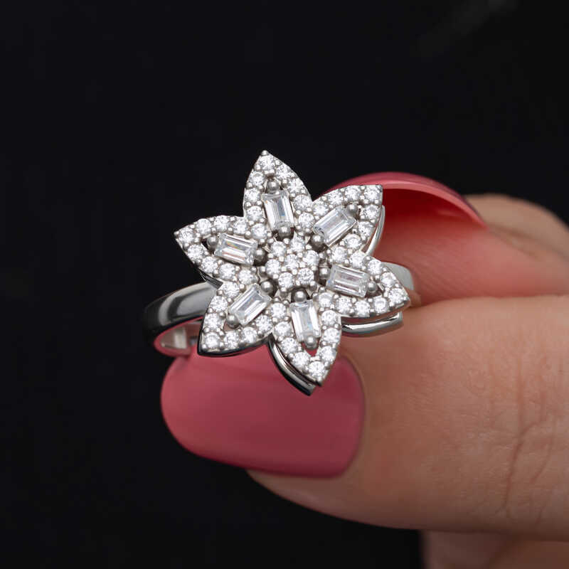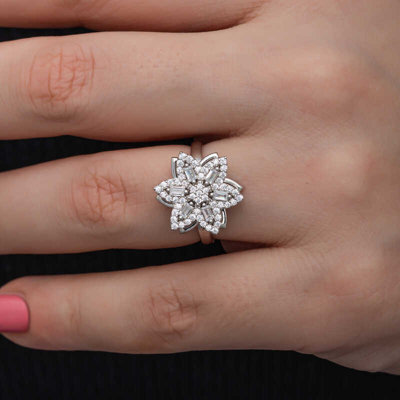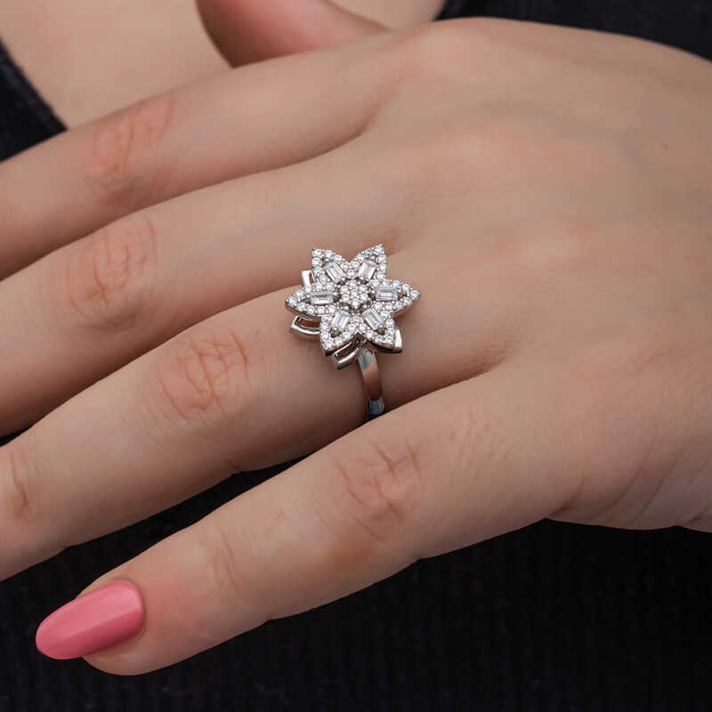 Gümüş Ayarlanabilir Yıldız Baget Taşlı Dönen Stres Kadın Yüzük