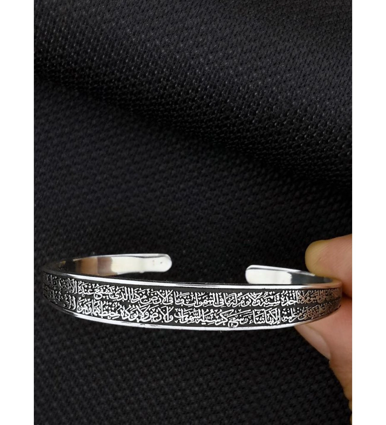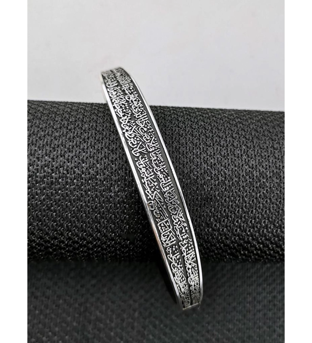 Gümüş Ayetel Kürsi Yazılı Ayarlanabilir Bileklik