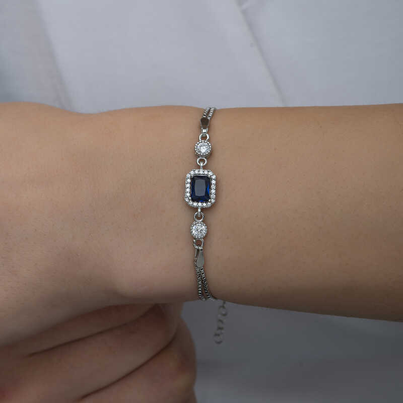 Gümüş Baget Mavi Taşlı Kadın Bileklik