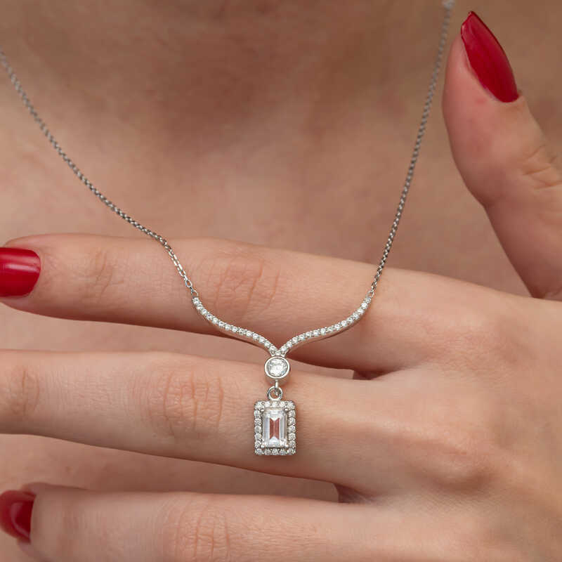 Gümüş Baget Taşlı Gerdanlık Model Kadın Kolye
