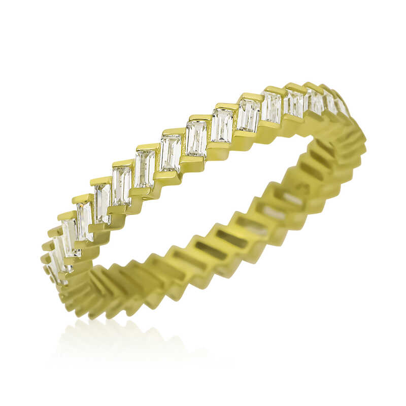 Gümüş Baget Taşlı Gold Tamtur Kadın Yüzük