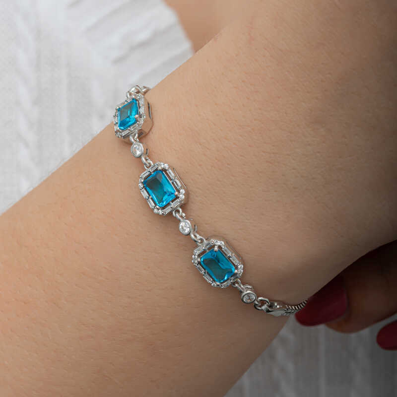 Gümüş Baget Turkuaz Taşlı Kadın Bileklik