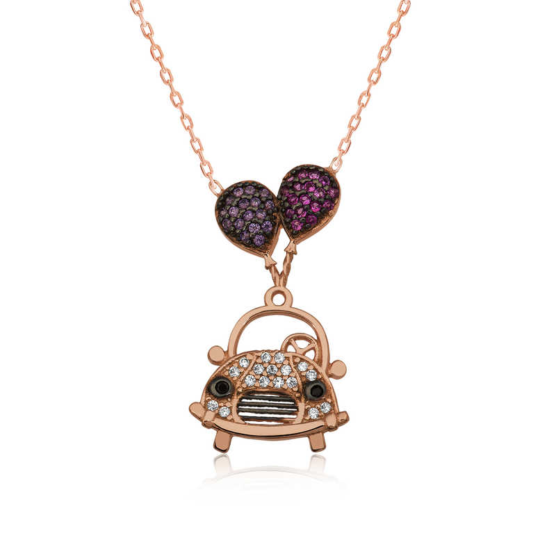 Cıvıl cıvıl aşk kokulu bu gümüş kolye sizler için tasarlandı… Balonlar rengarenk hayal dünyamızı anlatır… Bu zariflikten yola çıkılarak tasarlanan bu şık kolye; doğum günü hediyesi, sevgililer günü veya veya annelere hediye olarak özel günlerde tercih edilebilecek mükemmel bir seçenektir. Kolye 925 ayar gümüşten üretilmiştir. Gümüş kolyenin zincir uzunluğu 45 cm’dir. Gümüş üzerine rose kaplama yapılmıştır. Rose kaplama yapılan bayan kolyeler parlaklığını uzun süre muhafaza eder, gümüş rengini pembe renge dönüştürür ve oksitlenmeyi geciktirir. Tüm gümüş kolyelerde olduğu gibi gümüş balonlu araba bayan kolye de el emeği ile üretilmiştir. Üzerinde bulunan taşlar zirkondur. Gümüş ve değerli taşlar nedeniyle belirtilen ürün ağırlığında ± %10 sapma olabilmektedir.