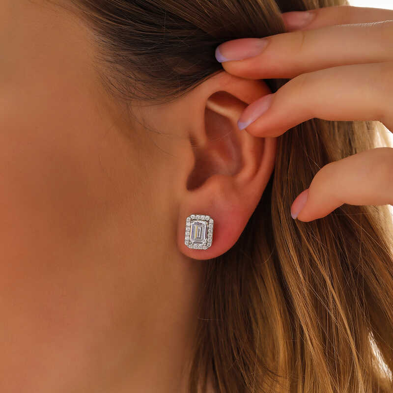 Gümüş Beyaz Baget Taşlı Çivili Kadın Küpe