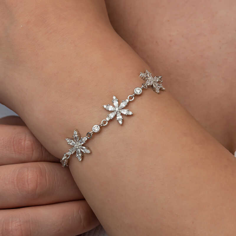 Beyaz Lotus Çiçeği Kadın Bileklik, zarif bir tasarıma sahip olan ve hem estetik hem de anlam derinliği taşıyan bir aksesuardır. Lotus çiçeği, birçok kültürde saflığın, yenilenmenin ve ruhsal büyümenin sembolü olarak kabul edilir. Bu bileklik, şıklığı ve zarafetiyle ön planda olup, günlük kullanımda veya özel etkinliklerde rahatlıkla takılabilir.Gümüş üzerine rodyum kaplama yapılmıştır. Rodyum kaplama yapılan beyaz lotus çiçeği kadın bileklik modelleri parlaklığını uzun süre muhafaza eder.Gümüş ve değerli taşlar nedeniyle belirtilen ortalama ürün ağırlığında ± %10 sapma olabilmektedir.