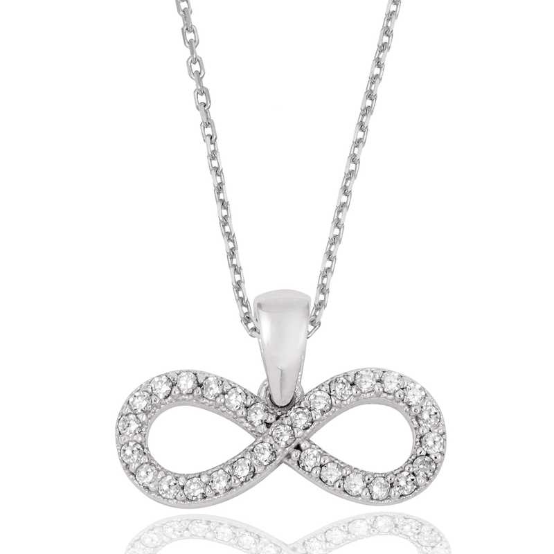 Gümüş Beyaz Taşlı Sonsuzluk Bayan Kolye
