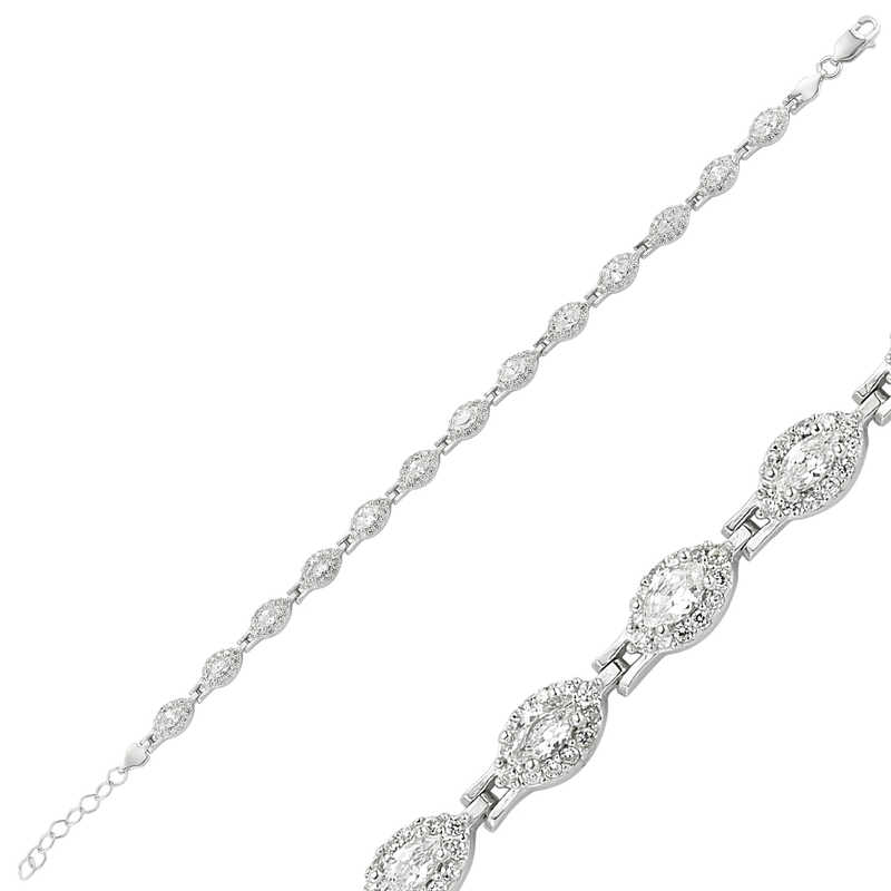 Gümüş Beyaz Taşlı Su Yolu Bayan Bileklik