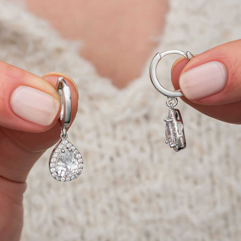 Gümüş Beyaz Zirkon Taşlı Damla Kadın Küpe