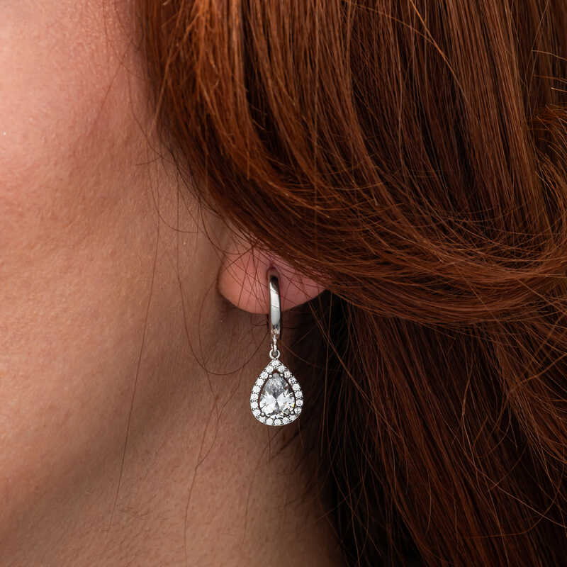 Gümüş Beyaz Zirkon Taşlı Damla Kadın Set