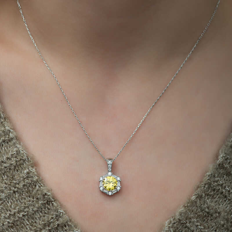 ​Gümüş Buğday Sarısı Baget Taşlı Bayan Kolye