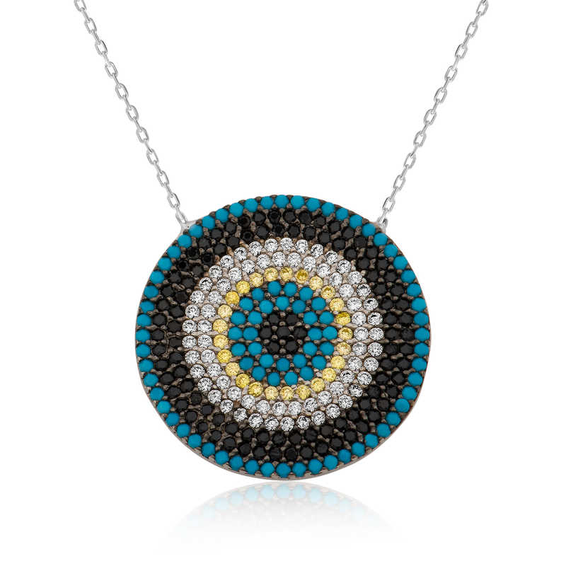 Gümüş Büyük Nazar Boncuğu Bayan Kolye