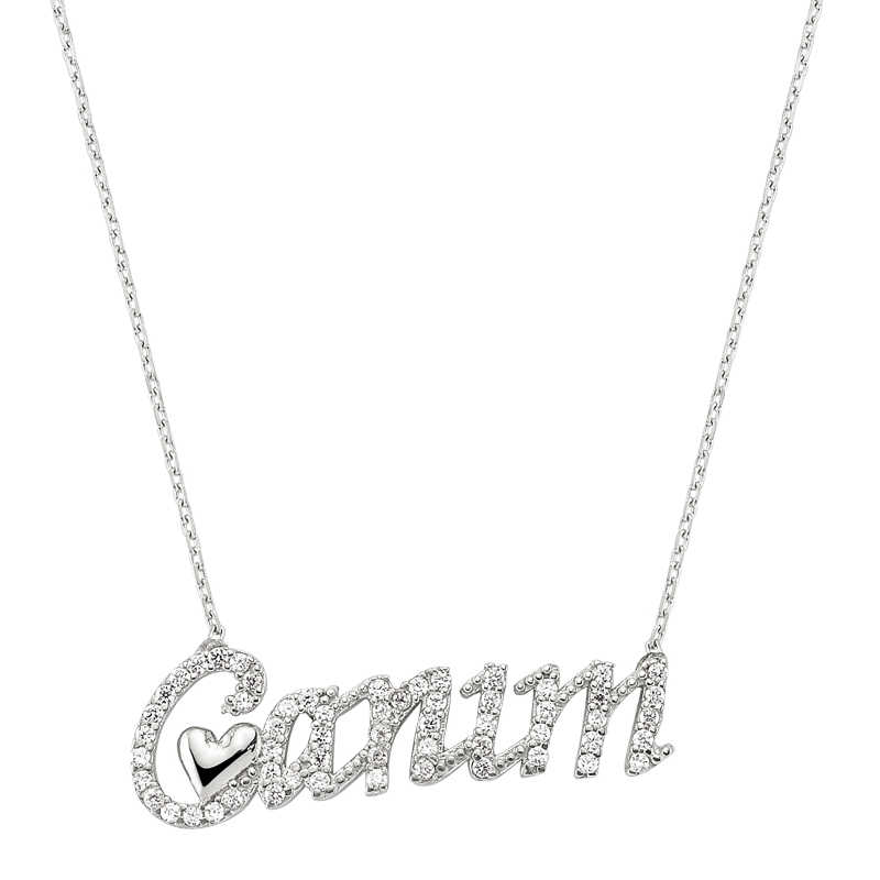 Zirkon taşlı canım yazılı bayan kolye ile sevdiklerinize, onlara verdiğiniz değeri belirtmek için ideal bir model. Bu özel tasarım canım yazılı bayan kolye 925 ayar gümüşten imal edilmiştir. Gümüş üzerine rodyum kaplama yapılmıştır. Rodyum kaplama yapılan gümüş bayan kolye modelleri parlaklığını uzun süre muhafaza eder ve oksitlenmesi gecikir. Kolye üzerinde bulunan beyaz taşlar zirkondur. Gümüş olan zincir boyu ortalama 45 cm"dir. Gümüş canım yazılı bayan kolye diğer tüm gümüş bayan kolye modellerinde olduğu gibi el emeği ile üretilmiştir. Gümüş ve değerli taşlar nedeniyle belirtilen ürün ağırlığında ± %10 sapma olabilmektedir.