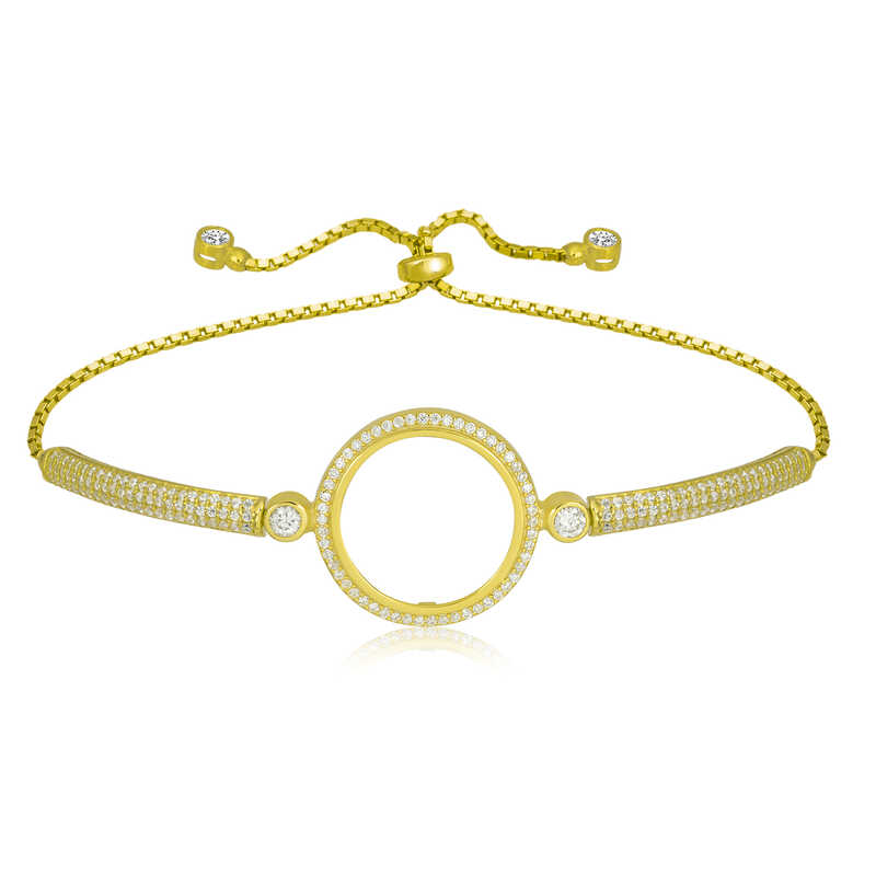 Yuvarlak form deseniyle şıklığı ifade eden gümüş çeyrek takılabilen altın kadın bileklik modeli ile sevginiz, sevdiğiniz kadının teninde hayat bulsun. Genç sevgililerin ve kendini genç hissedenlerin özel günlerde de seçebileceği bu kadın bileklik modeli ile sevdiğinizin bileğini aşkla süsleyin. Sizin olduğu kadar sevdiklerinizin de keyifle takacağı kadın bileklik sevdiğinize en güzel hediyelerden biri olacaktır. Bu kadın bileklik modeli 925 ayar gümüşten imal edilmiştir. Gümüş üzerine altın kaplama yapılmıştır. Altın kaplama yapılan gümüş kadın bileklik modelleri parlaklığını uzun süre muhafaza eder ve oksitlenmesi gecikir. Bileklik üzerinde bulunan beyaz taşlar zirkondur. Tüm kadın bileklik modellerinde olduğu gibi gümüş kadın bileklik modeli de el emeği ile üretilmiştir. Gümüş ve değerli taşlar nedeniyle belirtilen ortalama ürün ağırlığında ± %10 sapma olabilmektedir.