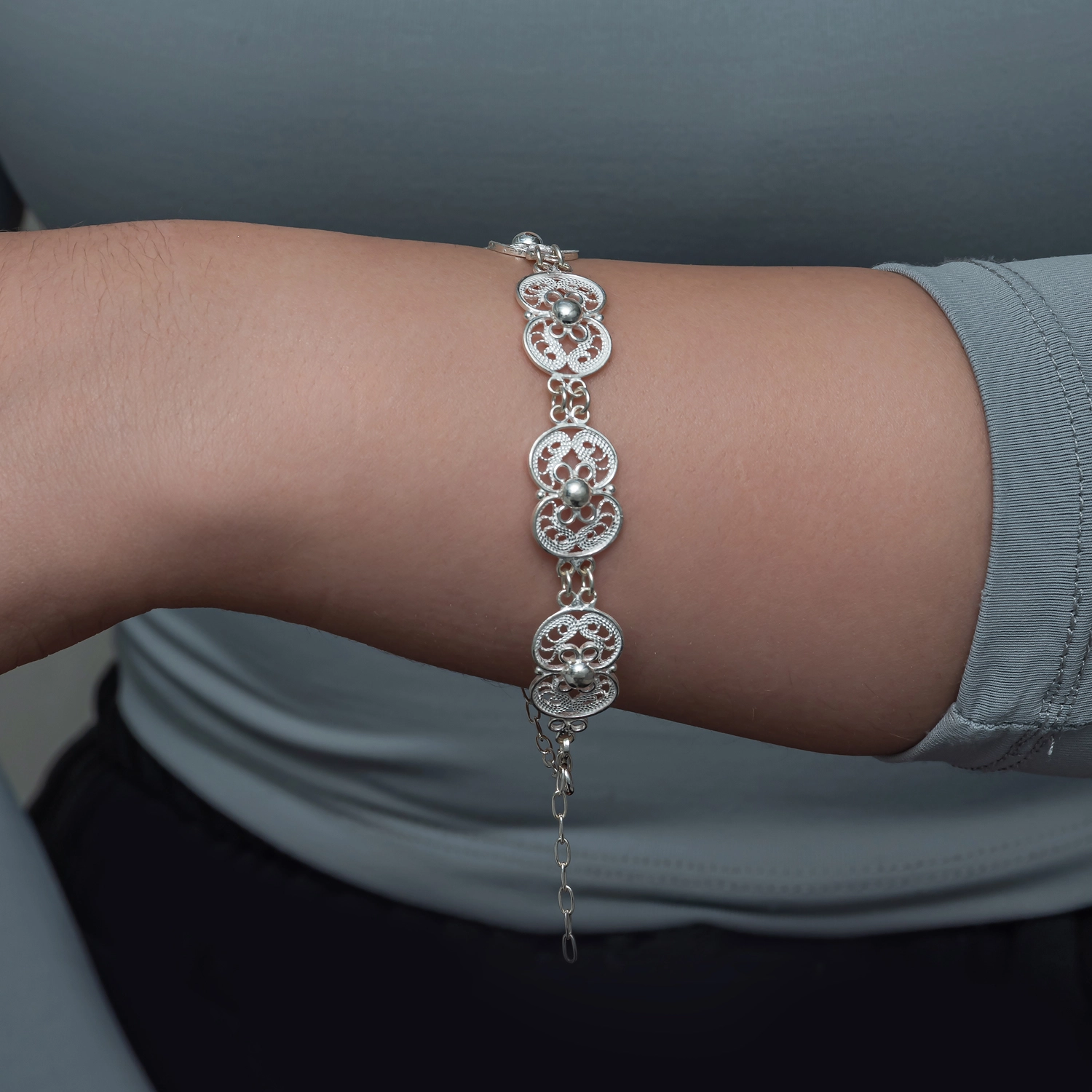 Gümüş Çiçek Motifli Telkari Kadın Bileklik