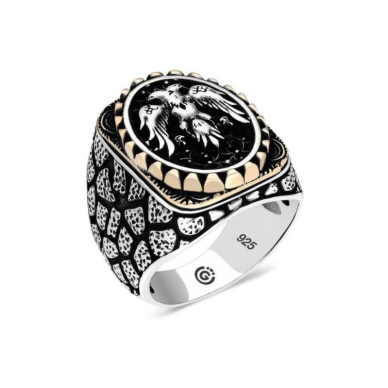 Gümüş Çift Başlı Kartal Oval Erkek Yüzük