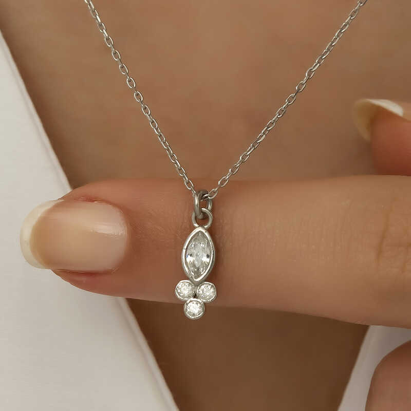 Gümüş Çiğ Damlası Mekik Tektaş Bayan Kolye