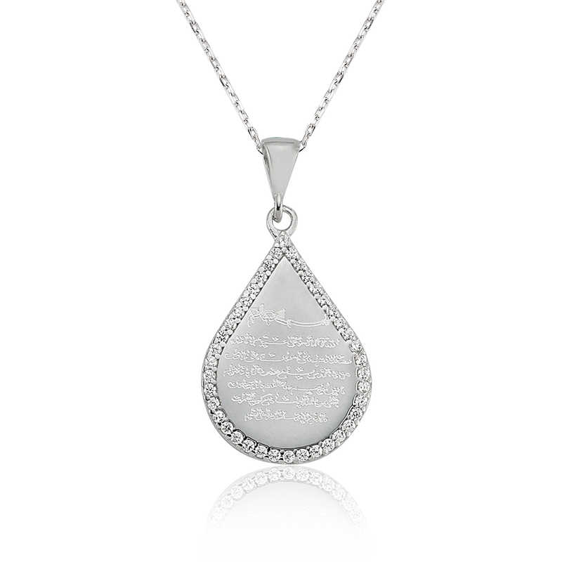 Gümüş Damla Ayetel Kürsi Bayan Kolye