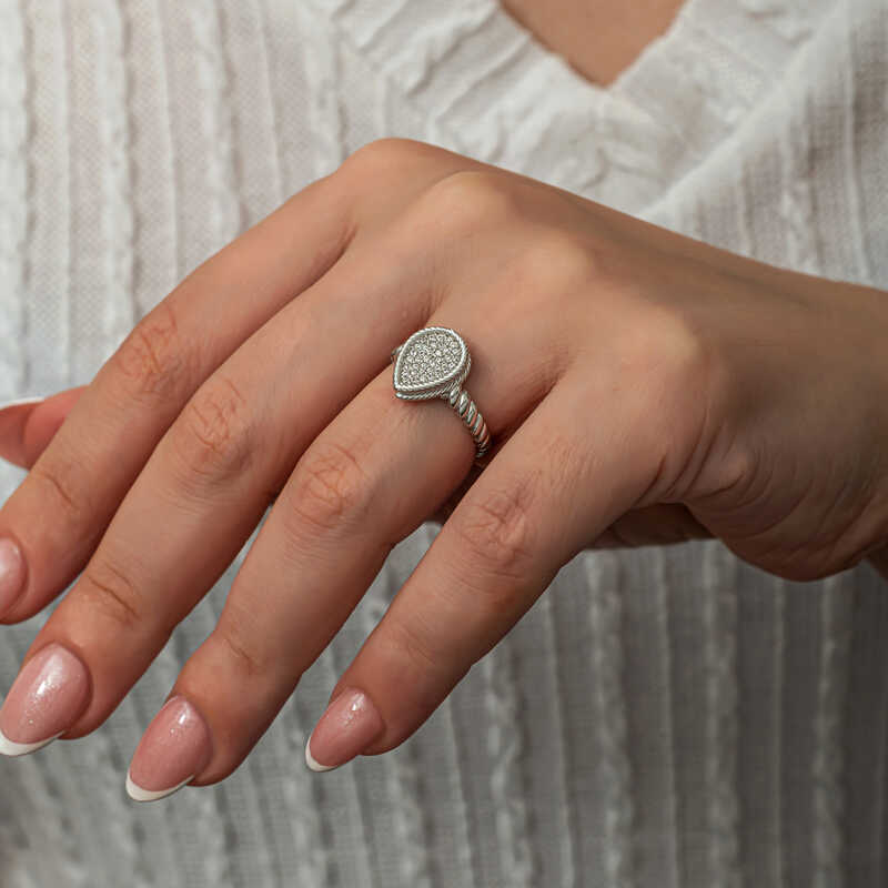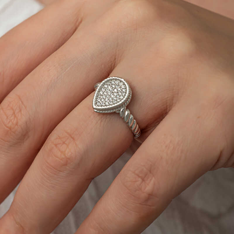 Gümüş Damla Zirkon Taşlı Kadın Yüzük