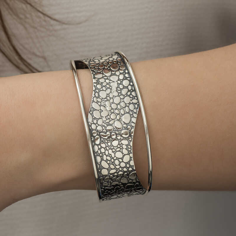 Gümüş Eskitme Desenli Bayan Bilezik