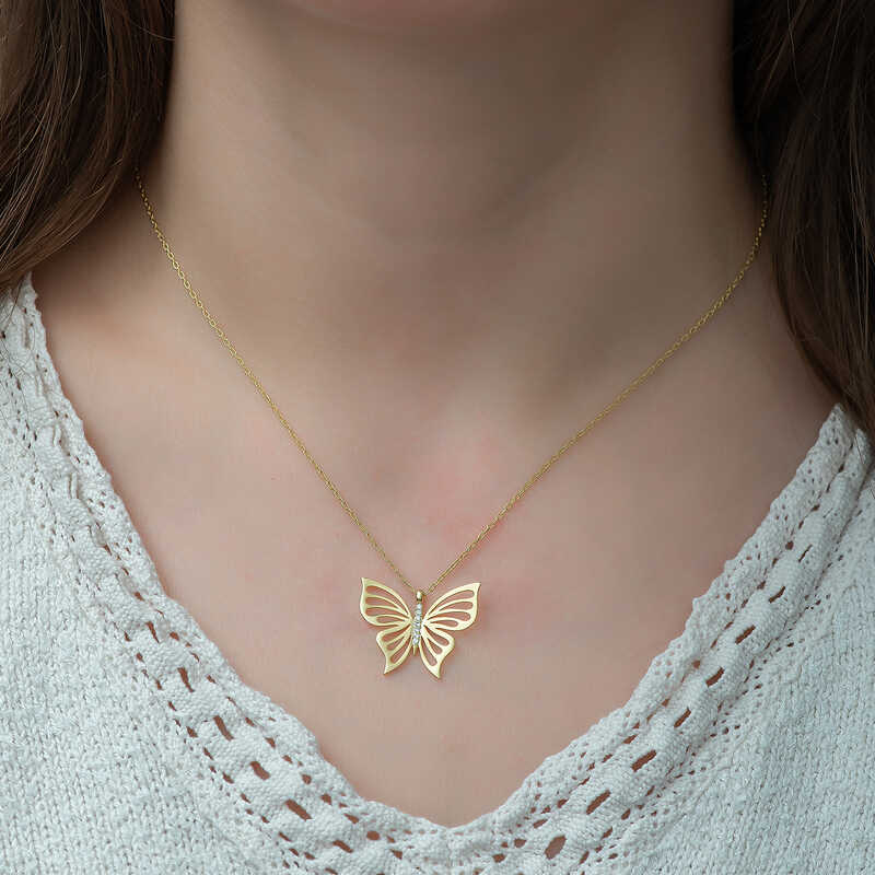 Gümüş Gold Bahar Kelebeği Bayan Kolye