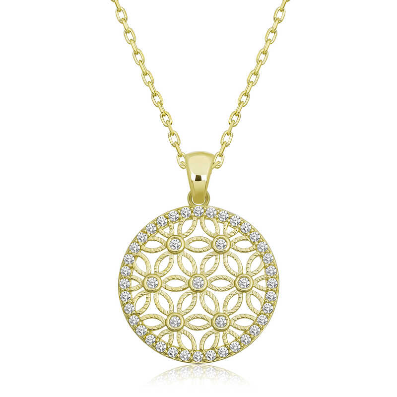 Gümüş Gold Beyaz Taşlı Yaşam Çiçeği Kadın Kolye