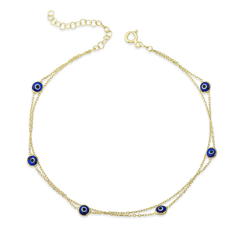 Gümüş Gold Çift Zincirli Nazar Kadın Bileklik