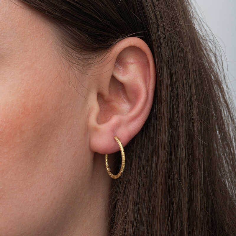 Gümüş Gold Kalemli Halka Kadın Küpe