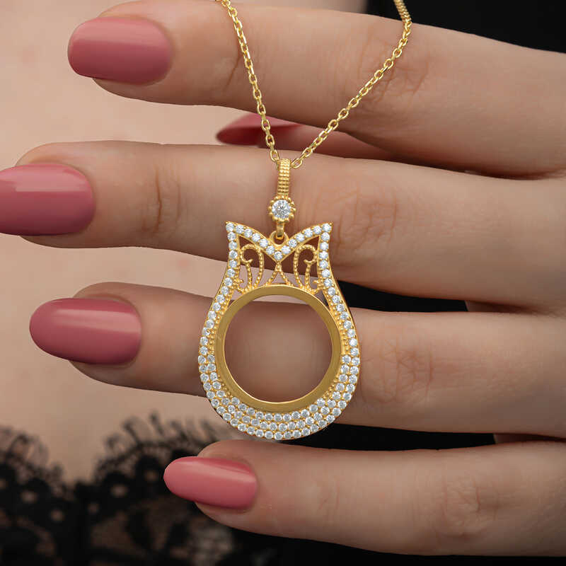 Gümüş Gold Kaplama Çeyrek Altın Takılabilen Kadın Kolye