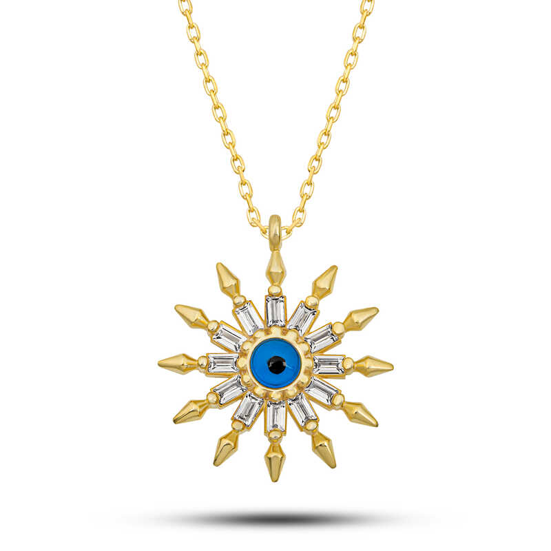 Gümüş Gold Koruyucu Göz Güneş Kadın Kolye