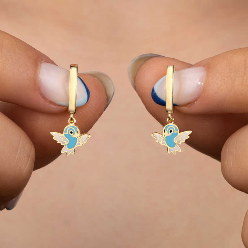 Gümüş Gold Mavi Renkli Sallantılı Kuş Kadın Küpe