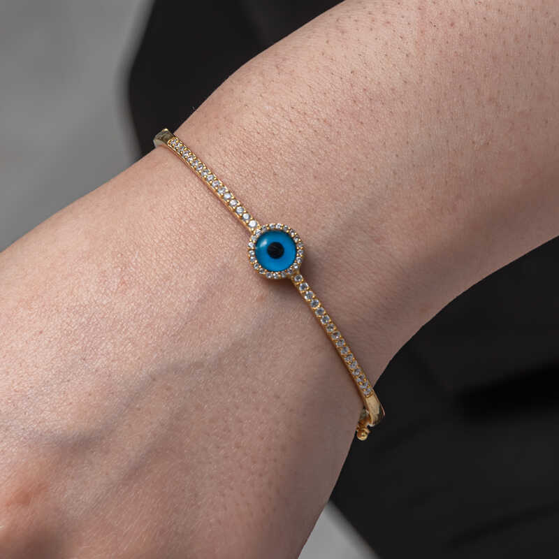 Gümüş Gold Nazarlı Göz Kadın Bilezik
