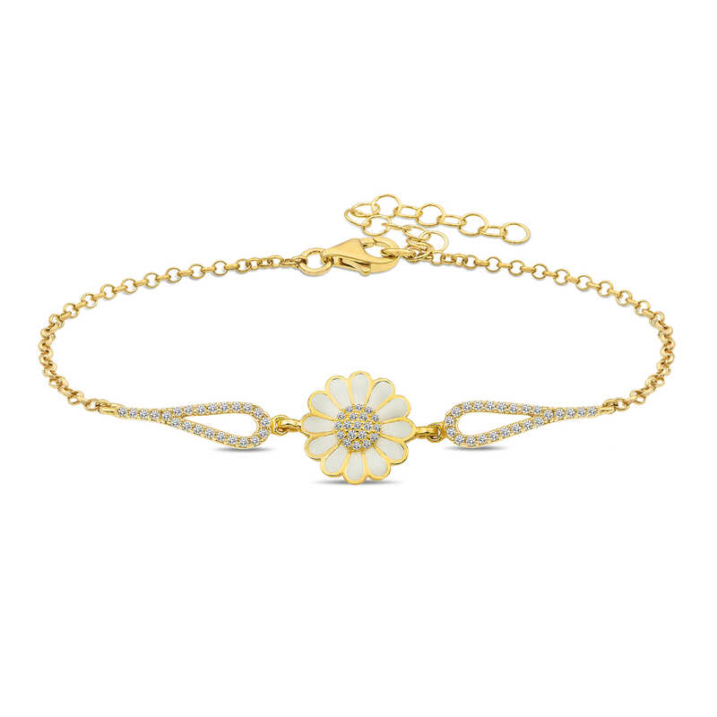 Papatya çiçeği, temiz sevgi anlamını ifade eder. En büyük özelliklerinden biri her sapında bir tane olmasıdır. Bu güzellik tasarlanarak ortaya çıkan bu ışıl ışıl bileklik, zirkon taşlarla süslenmiştir… Bu şık bileklik; doğum günü hediyesi, sevgililer günü hediyesi veya annelere hediye olarak özel günlerde tercih edilebilecek mükemmel bir seçenektir. Gümüş gold papatya bayan bileklik 925 ayar gümüşten imal edilmiştir. Bu bileklik üzerinde rose altın kaplama yapılmıştır. Rose altın kaplama yapılan ürünler parlaklığını uzun süre muhafaza eder. Üzerinde bulunan taşlar zirkon"dur. Tüm gümüş bayan bileklik modellerinde olduğu gibi gümüş gold papatya bayan bileklik modeli de el emeği ile üretilmiştir. Gümüş ve değerli taşlar nedeniyle belirtilen ortalama ürün ağırlığında ± %10 sapma olabilmektedir.