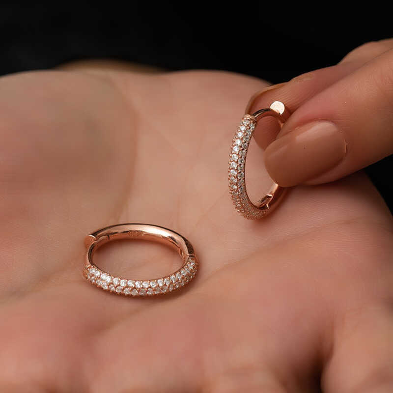 Gündelik hayatta ve özel günlerde şık tasarımı ile dikkat çeken bu küpeyi severek kullanacaksınız. Tüm bayanlara hitap eden, modası geçmeyecek olan gümüş halka bayan küpe sizleri bekliyor. Gümüş rose kaplama beyaz taşlı halka bayan küpe; doğum günü hediyesi, sevgililer günü hediyesi veya annelere hediye olarak özel günlerde tercih edilebilecek mükemmel bir seçenektir. Gümüş küpe 925 ayar gümüşten imal edilmiştir. Gümüş üzerine rose kaplama yapılmıştır. Rose kaplama yapılan gümüş küpe modelleri parlaklığını uzun süre muhafaza eder ve oksitlenmesi gecikir. Tüm bayan küpelerde olduğu gibi bu küpe modeli de el emeği ile üretilmiştir. Gümüş ve değerli taşlar nedeniyle belirtilen ortalama ürün ağırlığında ± %10 sapma olabilmektedir.