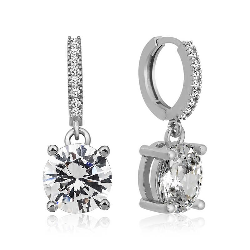 Gümüş Rodium Halka Tek Taş Küpe