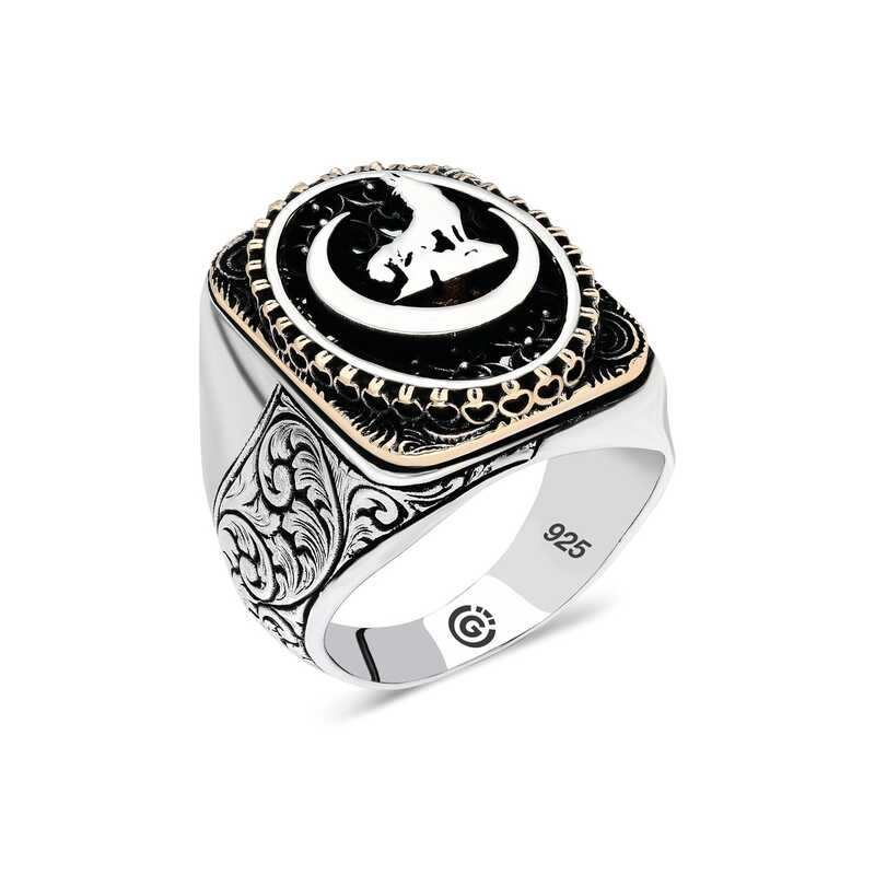 Gümüş Hilal Bozkurt Oval Erkek Yüzük