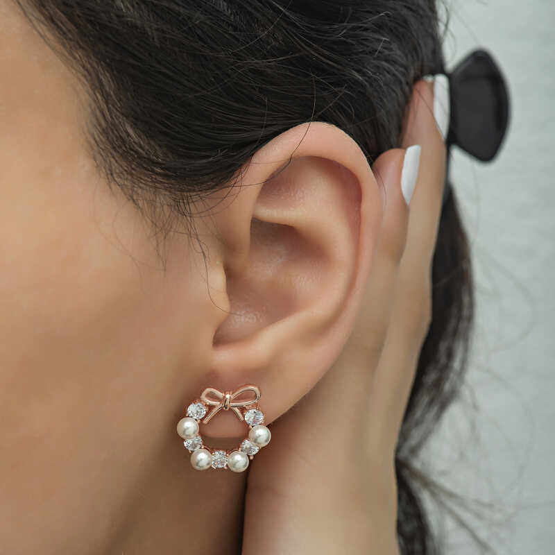 Gümüş İnci Kurdele Çivili Kadın Küpe