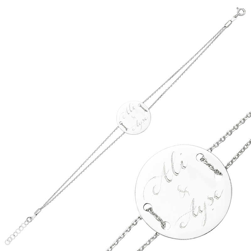 Gümüş İsimli Yuvarlak Plaka Bayan Bileklik